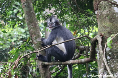 《ジャングル・トレッキング ②》【世界遺産】 アチェ・リーフモンキーというスマトラ島北部でのみ見られる種だそうです。 |