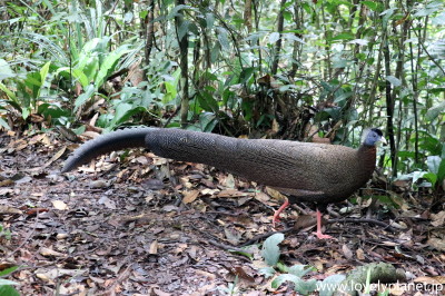 《ジャングル・トレッキング ④》【世界遺産】 次は、マレー半島、スマトラ島、ボルネオ島の森林地帯のジャングルにのみ生息するというセイランという大型のキジ科の鳥です。 非常に臆病な鳥で、野生下で姿を見ることは稀なそうなのでラッキーでした。 |