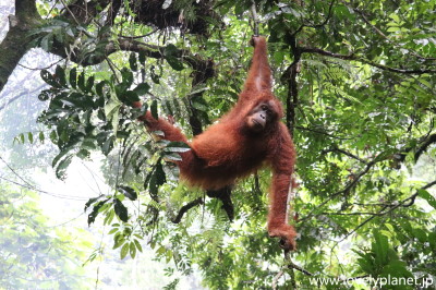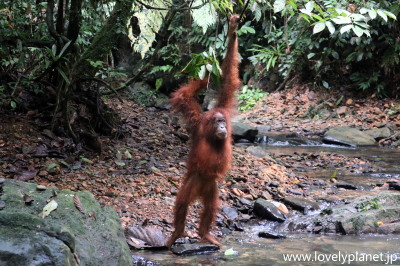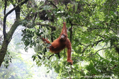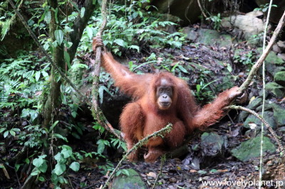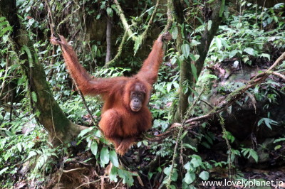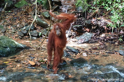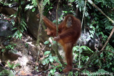 《ジャングル・トレッキング ⑨》【世界遺産】 1日(日帰り)トレッキングだと、オランウータンを見られる可能性は五分五分程度ということだったので、少なくともこれで1泊にした甲斐があったというものです。 |