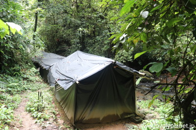 《ジャングル・トレッキング ⑩》 15時過ぎになってようやく、この日宿泊するキャンプ場に到着しました。 |