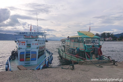 《トバ湖 ③》 サモシール島とパラパットを結ぶボートは1時間に1本程度出ているのでとても便利で、多くの観光客(ここも欧米人のバックパッカーが非常に多い)はサモシール島に宿泊してのんびり過ごす傾向があるそうです。 |