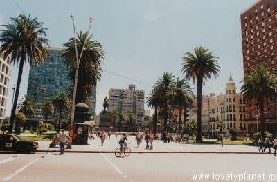 《モンテビデオ ②》 町の中心部にある独立広場(Plaza Independencia)を境に、西は旧市街、東は新市街となっています。 |