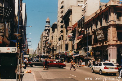《モンテビデオ ①》 ウルグアイは、アルゼンチンとブラジルに挟まれた日本の半分ぐらいの広さの国です。 首都モンテビデオは大西洋に注ぎ込むラ・プラタ川(Río de la Plata)の河口に面していて、川の対岸(と言っても100km以上離れていますが)のブエノスアイレスとは随分趣の異なる落ち着いた佇まいの町です。 写真は、新市街のメインストリートである7月18日通り(Av. 18 de Julioです)。 |