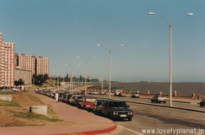 《モンテビデオ ⑧》 国会議事堂から500mほど東にあるランブラ通り(Rambla Sud América)は、ラ・プラタ川沿いに続く長い遊歩道で、地元住民の憩いの場となっています。 ジョギングやサイクリング、散歩、釣りなどを楽しむ人々の姿も多く見られます。 夏季には日光浴をする人でにぎわい、夕暮れ時には美しい夕日を眺める人気のスポットだそうです。 |