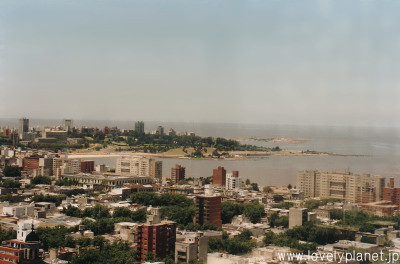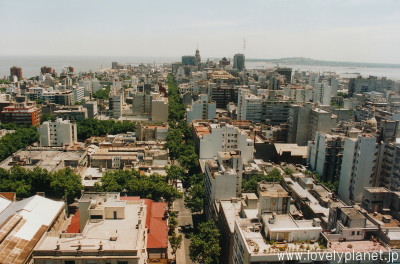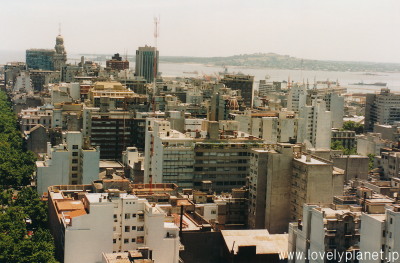《モンテビデオ ⑫》 市庁舎屋上の展望テラスからの眺めです。 右側(北の方角)にはラ・プラタ川が見えます。 温暖な気候で知られ、南米有数の港湾都市でもあります。 |