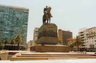 《モンテビデオ ⑯》 再び独立広場に戻って来ました。 広場の中央には、ウルグアイ独立戦争の英雄であるアルティガス将軍の騎馬像が立っています。 |