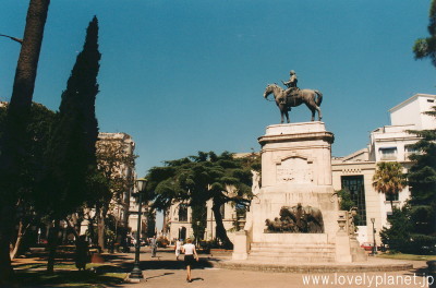 《モンテビデオ ㉖》 更に西に200mほど進むとサバラ広場(Plaza Zabala)があります。 中央には、イタリア統一運動の英雄ジュゼッペ・ガリバルディの騎馬像が設置されています。 こうして見ると、モンテビデオ中心部には多くの広場(という名の公園)があることがわかります。 |
